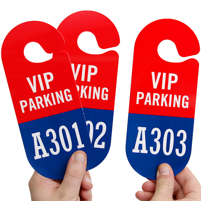 Here's a Racetrack shaped hang tag parking permit for your VIP guests that stands out in heavy traffic.