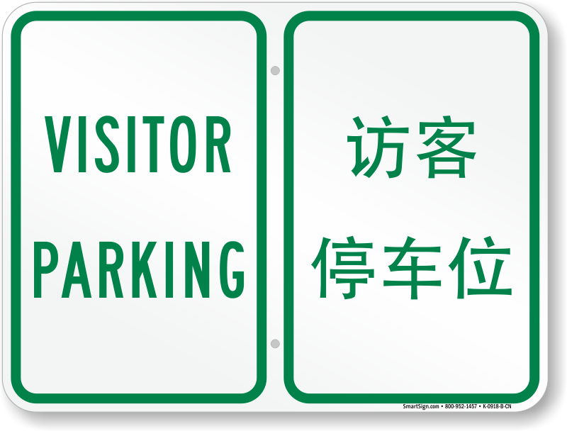 Let this Bilingual Parking sign convey the message in language other than English too. Deploy this and inform about the visitor parking in English and Chinese.