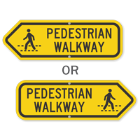 Yes, our keep to marked walkway pedestrian sign and customizable walkway sign templates let you specify directional arrows, aisle designations, distance markers, or facility-specific pedestrian routing information in aluminum, adhesive floor sign, and hanging sign formats to support any facility layout and traffic flow plan.