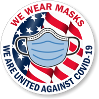 2" Circle Hard Hat Sticker: We Wear Masks - We Are United Against Covid-19 w/ Flag & Mask Clipart (HH-0615)