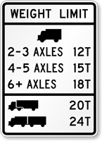 • • Custom weight limit signs let you adjust the weight limits for your road, highway, or bridge.