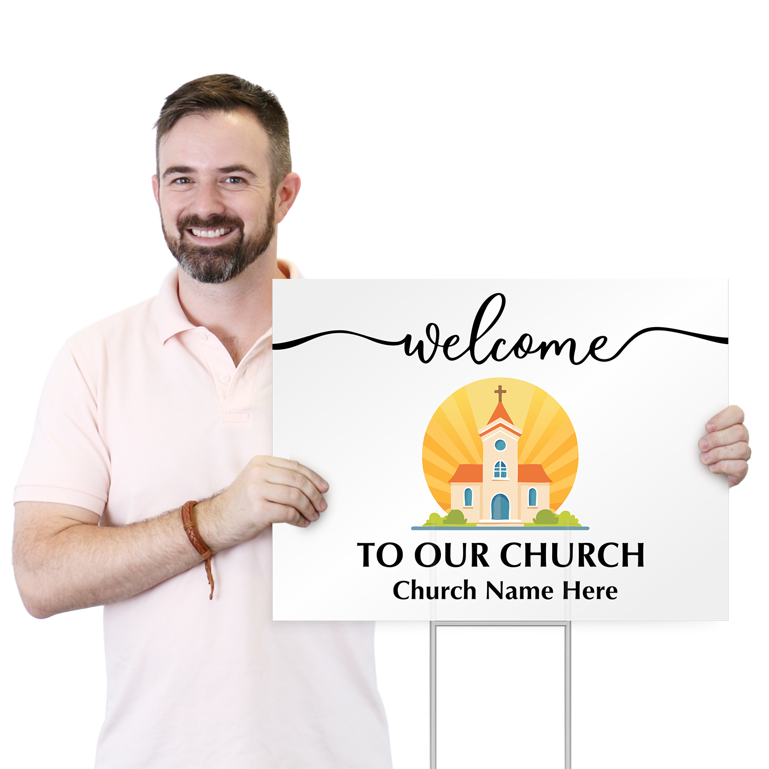 Custom Yard Religious Sign: Welcome To Our Church Add Church Name and Logo K3-3156-H
