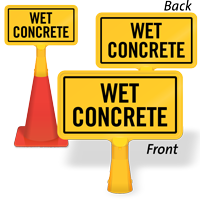 Warn motorists about wet concrete on the road with this highly-visible no-tip, portable Traffic Cone Sign. No installation required.