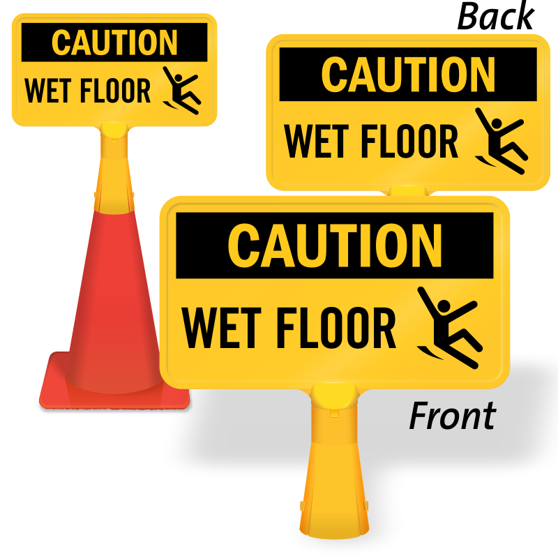 Alert people to wet floors and prevent slip and fall accidents with this highly visible no-tip, portable Traffic Cone Sign.